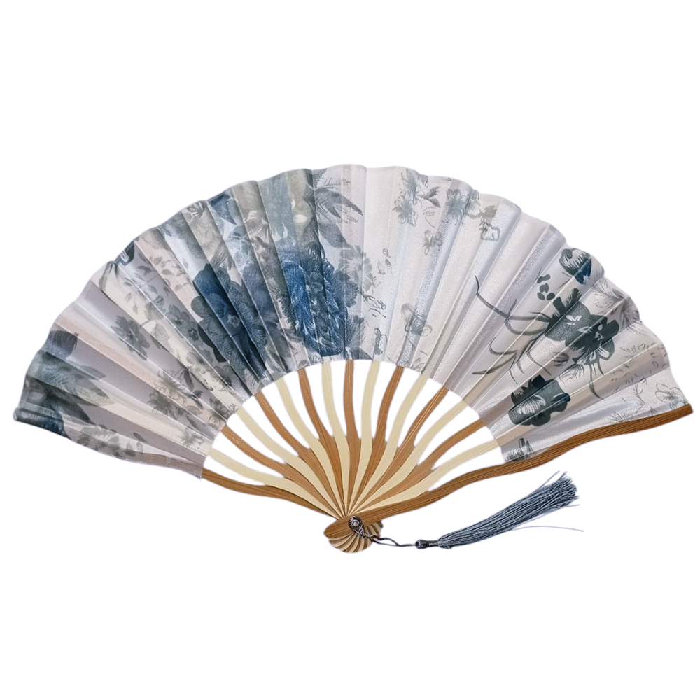 Αποκτήστε την απόλυτη καλοκαιρινή κομψότητα με αυτή την βεντάλια χειρός. Κατασκευασμένη από υψηλής ποιότητας ύφασμα πολυεστέρα με αίσθηση μεταξιού, είναι απαλή στην αφή και ανθεκτική. Το σχέδιο με λουλούδια προσθέτει μια ρομαντική και φινετσάτη νότα, ενώ η ξύλινη λαβή σε δύο αποχρώσεις του μπεζ ολοκληρώνει το στυλ. Η γκρι κρεμαστή φούντα 13 εκατοστών χαρίζει μια παιχνιδιάρικη λεπτομέρεια και την κάνει ακόμα πιο ξεχωριστή.